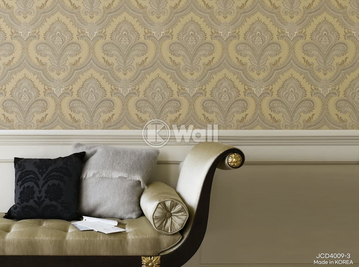 CONTESSA kết hợp tốt với đèn ánh vàng, gỗ óc chó, rèm nhung hoặc pha lê. Nếu bạn đang xây dựng phòng khách phong cách cổ điển, đừng bỏ qua giấy tường như một công cụ làm nổi bật cả không gian một cách nhẹ nhàng nhưng đầy nội lực.