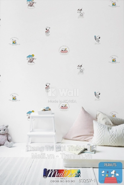 Giấy Dán Tường Hàn Quốc PEANUTS 83207-1 lý tưởng cho phòng khách, phòng ngủ, phòng làm việc hoặc góc học tập.