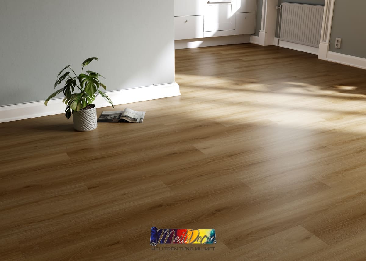 Vân gỗ chân thực: Sàn có hoa văn sắc nét, tinh tế, mang đến cảm giác ấm áp và gần gũi như gỗ tự nhiên.