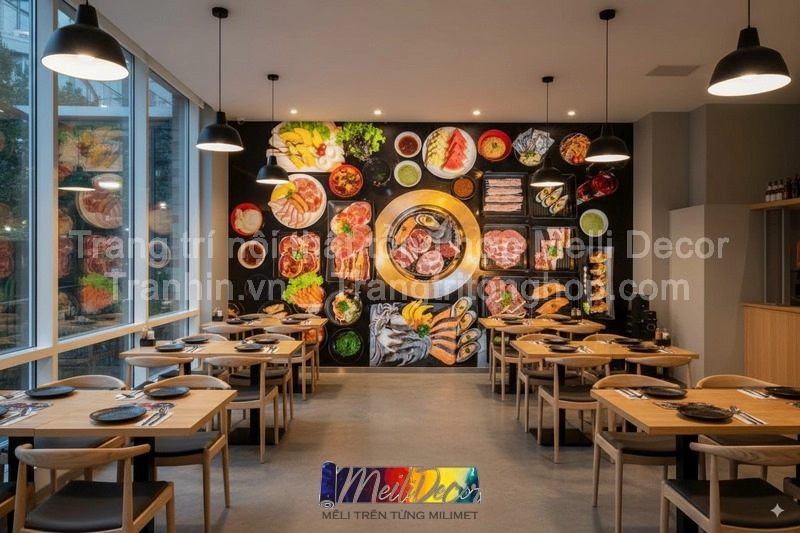 Không gian là yếu tố quan trọng quyết định trải nghiệm của thực khách. Bên cạnh hương vị món ăn, sự thoải mái và ấn tượng từ thiết kế nội thất giúp khách hàng muốn quay lại nhiều lần. Tranh dán tường nhà hàng quán ăn chính là giải pháp đơn giản nhưng hiệu quả, mang lại diện mạo chuyên nghiệp và tạo dấu ấn riêng cho thương hiệu.