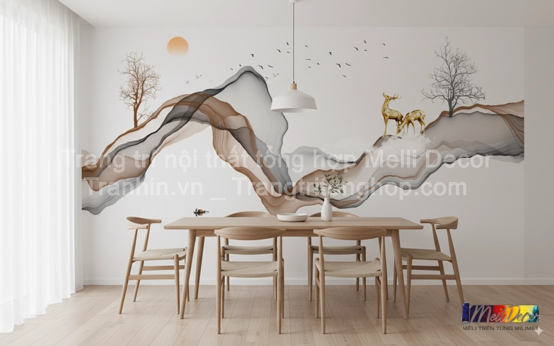 Phòng ăn là nơi mọi thành viên cùng nhau quây quần, chia sẻ niềm vui và tận hưởng những bữa cơm trọn vẹn. Với tranh dán tường phòng ăn hiện đại, không gian quen thuộc ấy sẽ trở nên tinh tế, ấn tượng và mang dấu ấn riêng biệt của gia chủ.