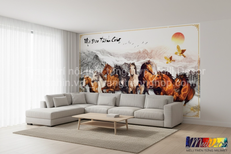 Tranh Dán Tường Phòng Khách Mã Đáo Thành Công – Vẻ Đẹp Sang Trọng, Ý Nghĩa Phong Thủy