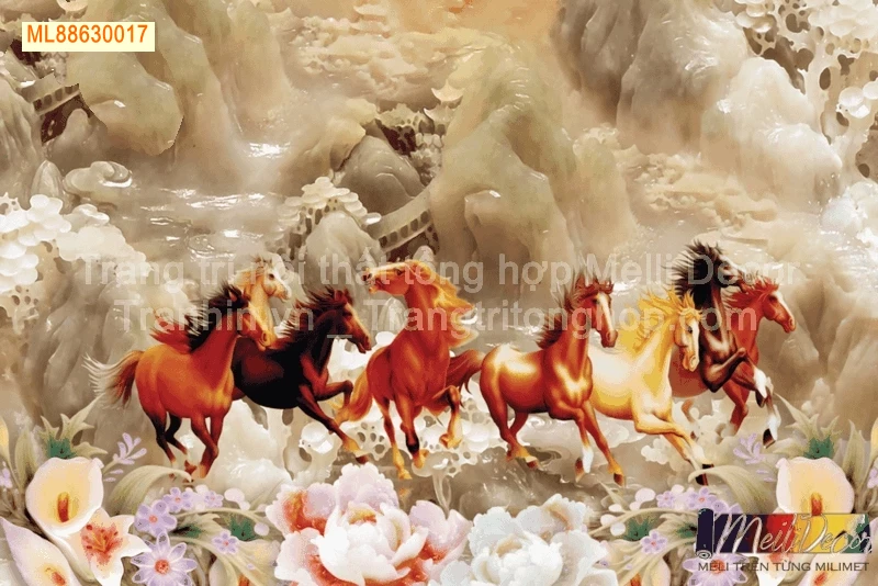 Tranh Dán Tường Phòng Khách Mã Đáo Thành Công – Biểu Tượng Của Khí Thế Và Thành Công