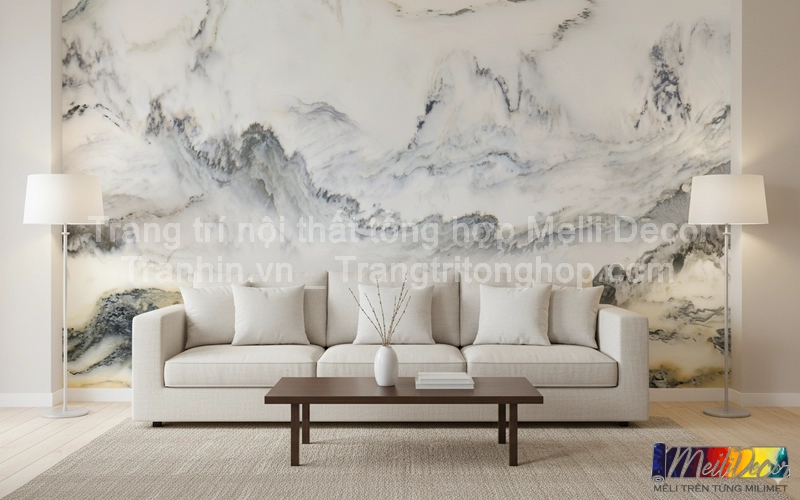 Phòng khách vốn là trung tâm của ngôi nhà, nơi tiếp đón bạn bè, người thân. Việc lựa chọn tranh dán tường phong cách thủy mặc giúp tạo nên điểm nhấn độc đáo, đồng thời đem đến cảm giác thư giãn, gần gũi với thiên nhiên.