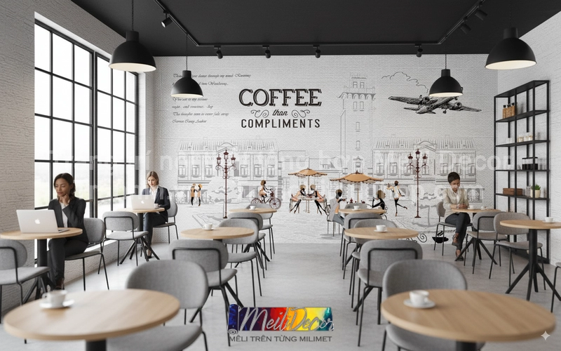 Meili Decor mang đến bộ sưu tập tranh dán tường quán cafe đa dạng, đáp ứng nhiều phong cách khác nhau. Với công nghệ in hiện đại, sản phẩm có màu sắc chân thực, độ bền cao và an toàn cho sức khỏe. Đội ngũ thi công chuyên nghiệp, nhanh chóng, đảm bảo không gian quán cafe của bạn hoàn thiện đẹp mắt và đúng phong cách.
