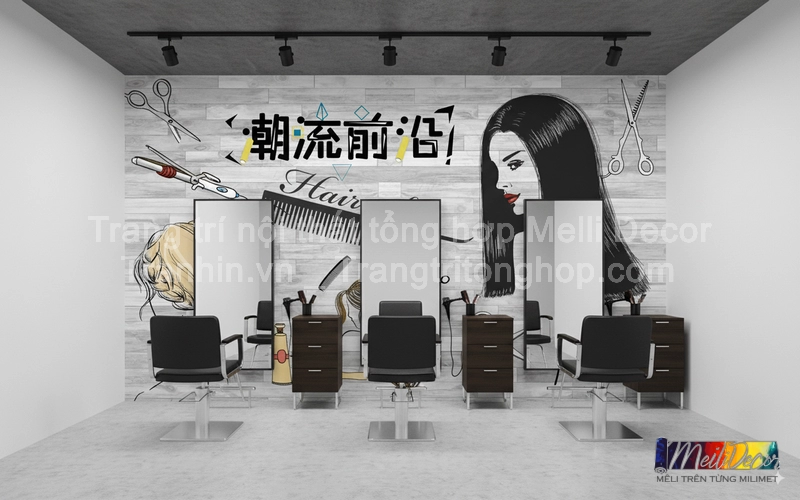 Ứng dụng tranh dán tường trong thiết kế salon tóc